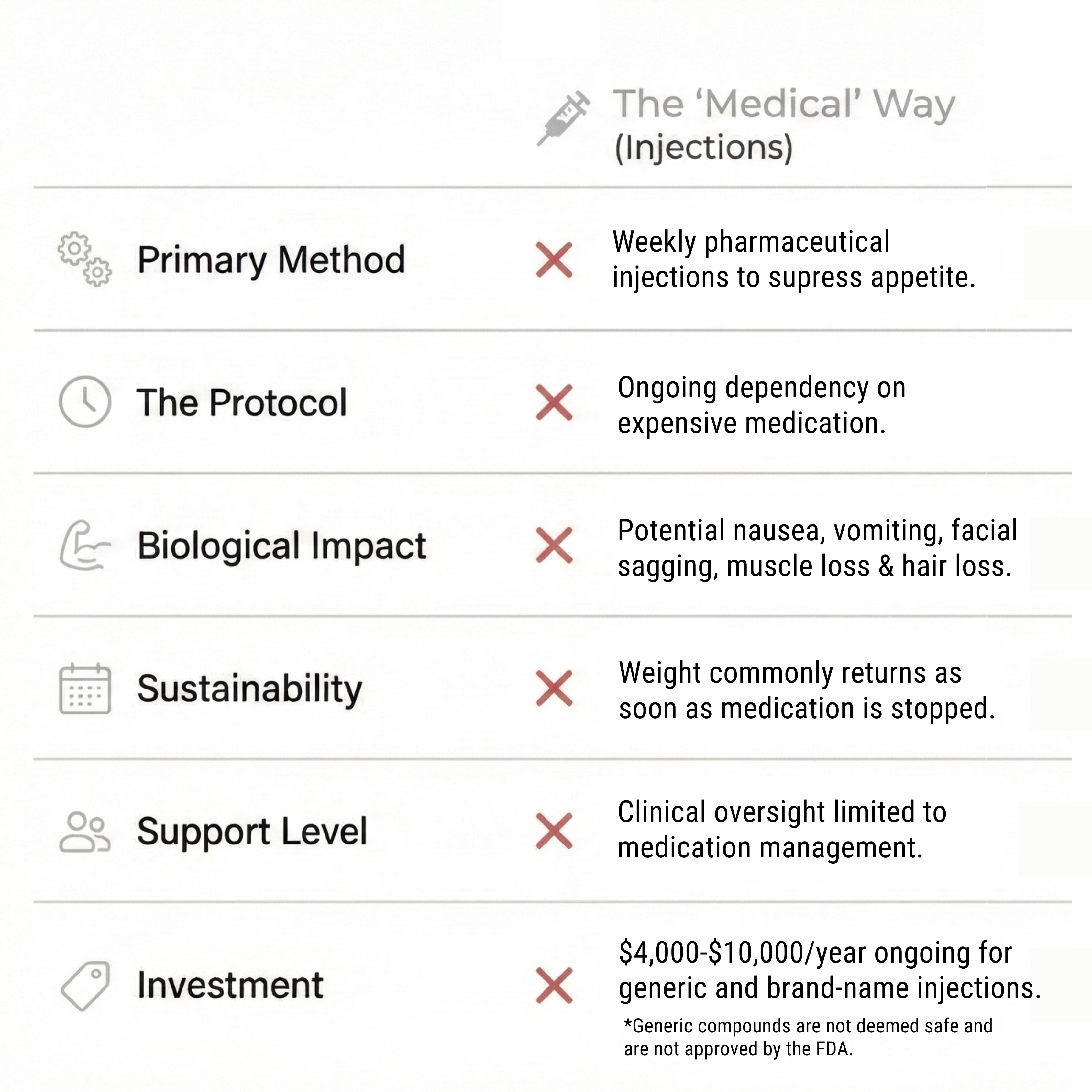 Melt fat and switch off ‘storage-mode’ using targeted nutraceuticals and real food– no starvation, no willpower battles, and no lifetime injections.